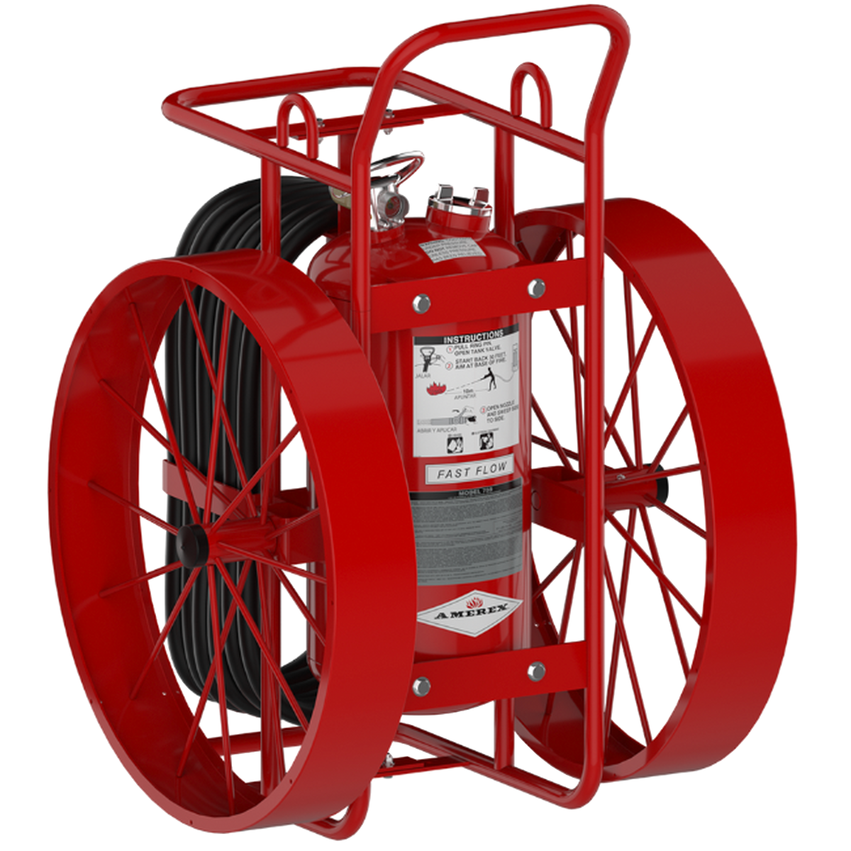 Z-Series High-Performance wheeled extinguishers offer superior reliability, corrosion resistance, and affordable maintenance costs. Amerex wheeled extinguishers have exceptional range and flow rate, making them ideal for use with combined agent attacks to extinguish escape points of flammable liquids under pressure.