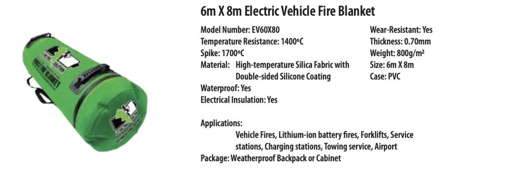 “EV” Electrical Vehicles. The following fire safety equipment is recommended.
